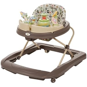 My 4 month old loves the toys on the walker, especially the spinning sphere with the spherical knobs. I didn't give this item 4 stars because I wished it came with a lower height adjustment than the standard 3 heights. I also wished the seat came with an insert for supported sitters-level babies. Other than the two improvements, the walker is a great parent-assistant that keeps baby entertained while the parent does chores or eats.