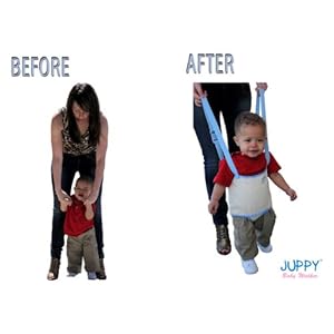 The Juppy Baby Walker is simply designed with safety in mind.The Juppy has received an overwhelming amount of positive product reviews from moms who have purchased it. The ultimate impact will be to see the parent go from the arduous task of bending to the immensely enjoyable act of seeing their baby walk while they themselves stand erect. Unlike traditional baby walkers The Juppy is a parent assisted baby walker which eliminates all of the dangers of walkers with wheels. The unique design of The Juppy eliminates the problems associated with similar products. For example other parent assisted walkers do not have the crotch piece which is essential in keeping the baby from involuntarily lifting its arms. It also helps to keep the babies arms by its side and therefore the baby learns balance on its own. No more falling down stairs or reaching for dangerous objects because The Juppy requires the parents' assistance at all times. - The Juppy is easily transportable. - It fits in your purse. - It s easy for grandparents to use. - No assembly required. - Suitable for boys and girls. - One size fits all (baby weight not to exceed 30lbs). - Adjustable straps for the best fit and height. - Made from 100% cotton that is machine washable.