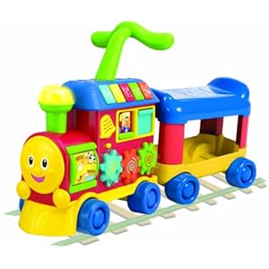- Play features on the train engine include spinning roller, window reveal and moving gears